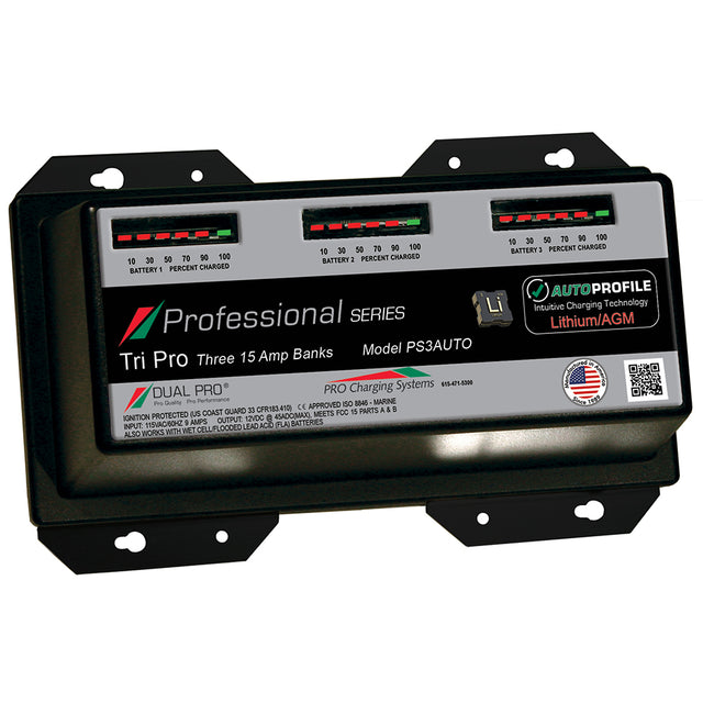 Dual Pro PS3 Auto 15A - 3-Bank Lithium/AGM Battery Charger [PS3AUTO]