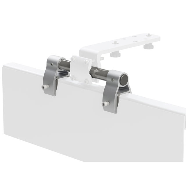 The adapter saddles the top rail and securely clamps in place with the included Allen key. It stays in place without any drilling or permanent installation damage. The Grill Mount Adapter is made of durable stainless steel and aluminum that resists rust and corrosion.