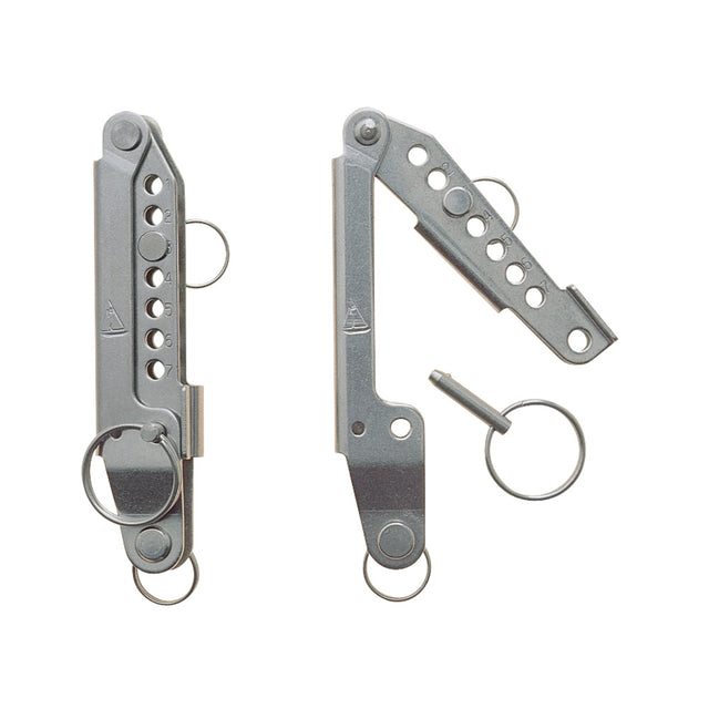 Developed for dry-sailed one-design dinghies. When the quick-release pin is pulled, easy adjustment can be obtained. 1/4″ pin.