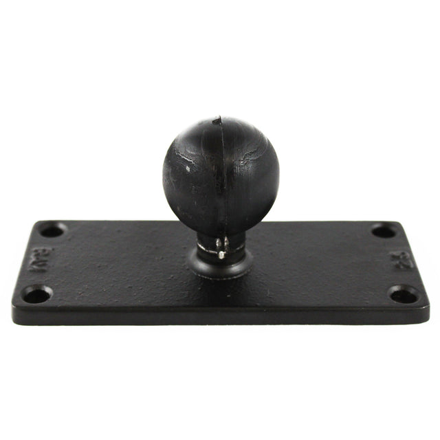 The RAM-202U-25 contains a 1" diameter rubber ball connected at right angles to a 2" x 5" rectangular base. This mount has pre-drilled holes at each corner of the base plate.