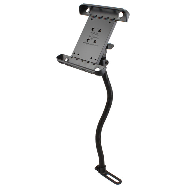 The RAM-B-316-1-TAB3 consists of a single socket arm, flex rod and Tab-Tite cradle. The base mounts to your seat rail without any drilling necessary. Connected to the base is a 18" rigid flexible rod that can be bent to position your device to it's optimum viewing location. The RAM POD I will hold everything you need safely and securely.